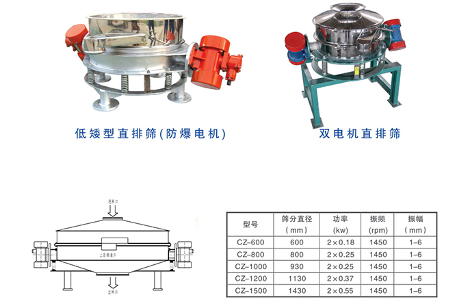 CZ系列直排篩是一種多用途新型篩分機,物料直接排放,處理量大。振動源分單電機和雙電機結構形式。雙電機結構相對于單電機結構直排篩的物料的運行軌跡更平穩(wěn),上層物料可自動排放,設備適應性顯著增加;